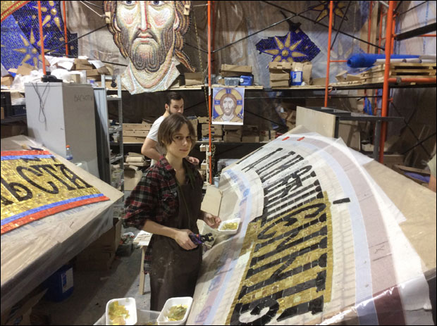 Пре почетка рада комисије, дописник “Новости” имао је прилику да у петак погледа у атељеу Николаја Мухина како уметници раде на мозаику. Кад буду готови, ти панели ће бити превезени у Београд, где ће их монтирати на куполи.